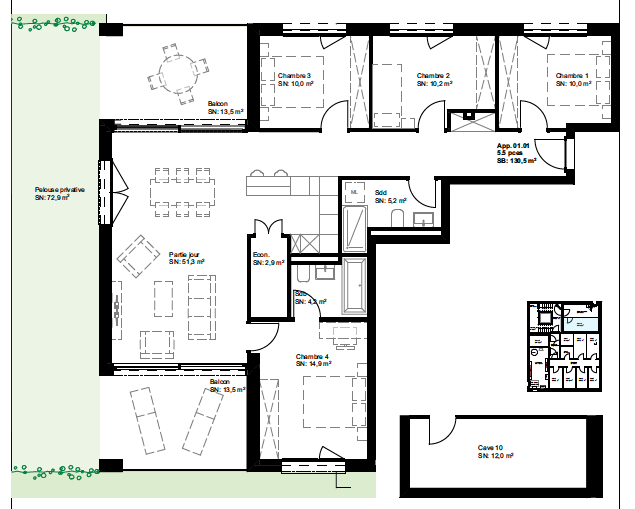 - Pelouse privative de 72,9 m2