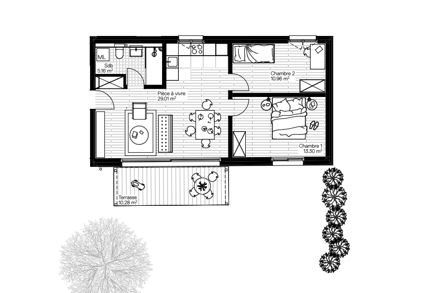 Bâtiment B = conservation du patrimoine bâti en valorisant la façade sur rue.