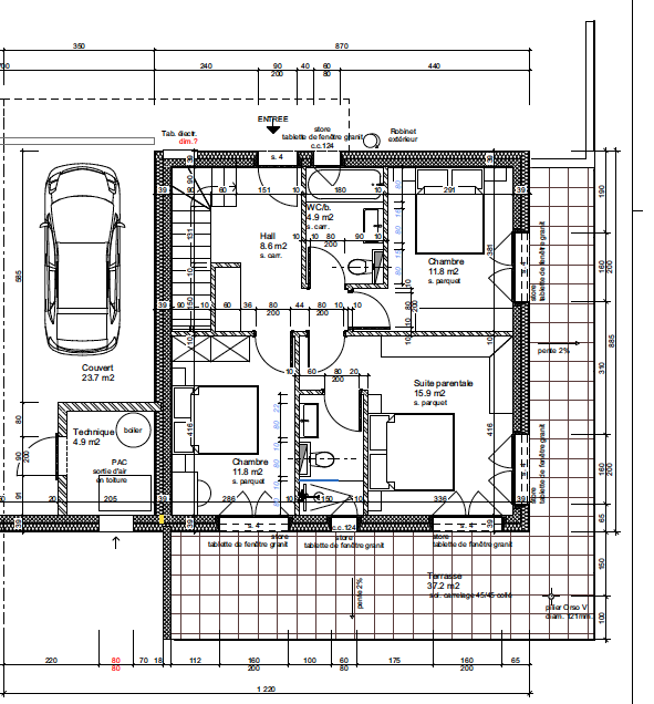 - Suite parentale avec salle d'eau (douche, lavabo, wc)